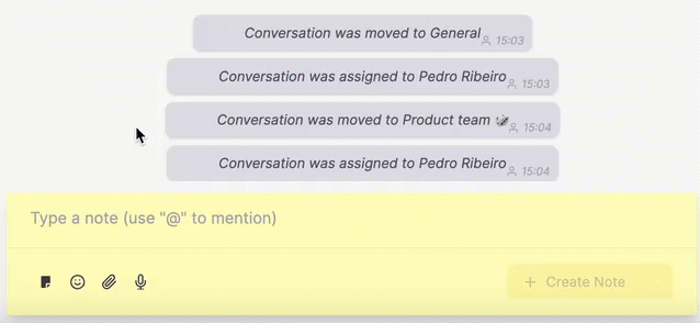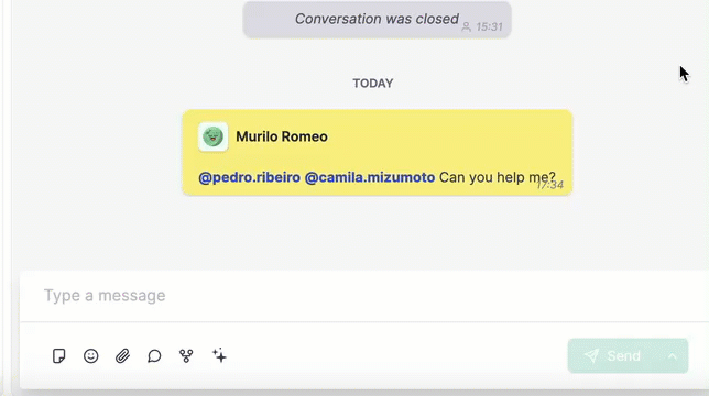 Exemplo: @suporte pode notificar todos os agentes da equipe de Suporte.