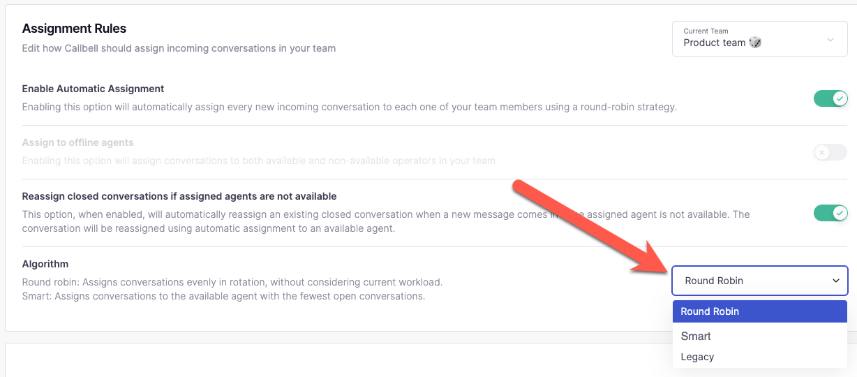 Confira em: https://dash.callbell.eu/settings/assignment_rules